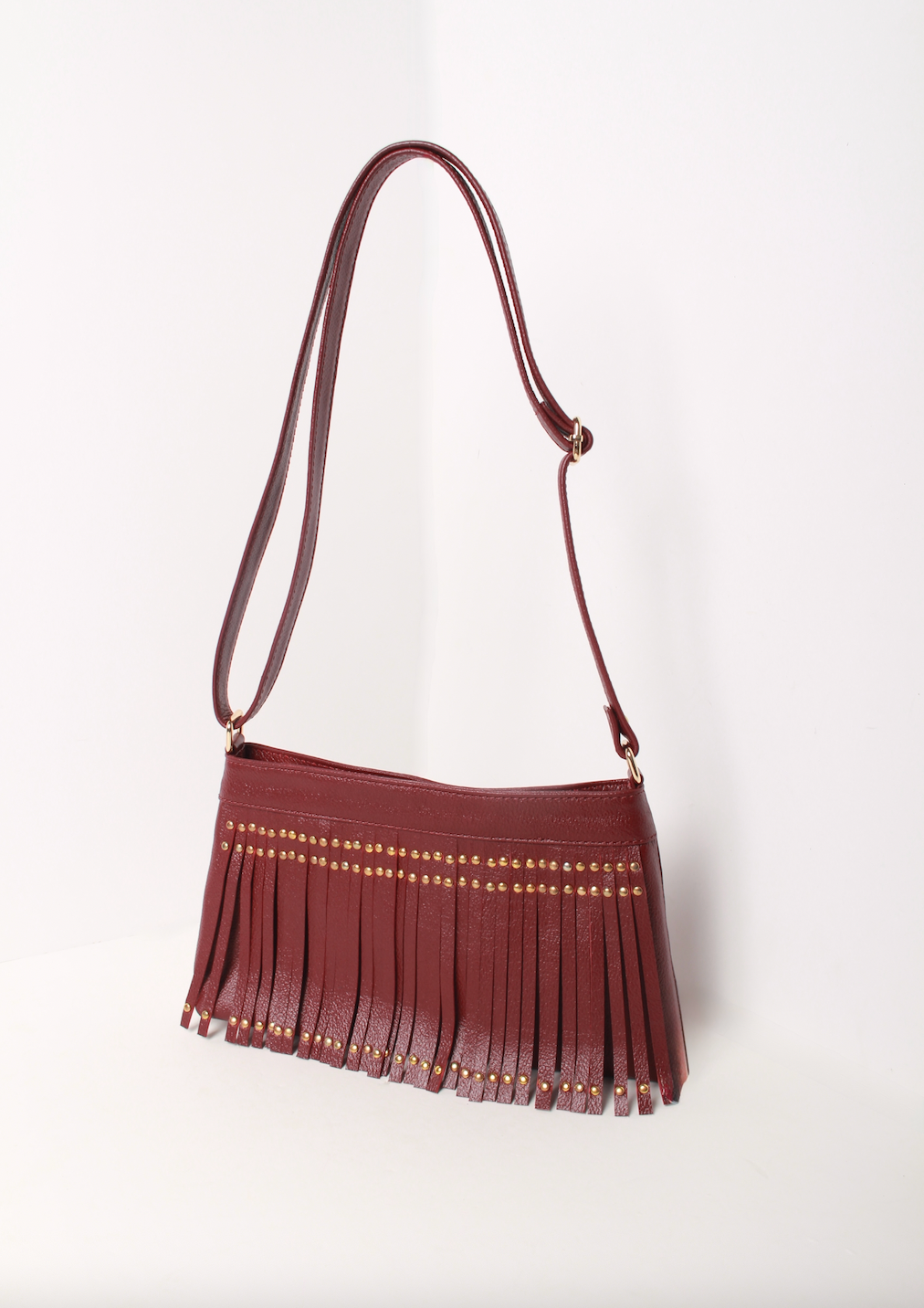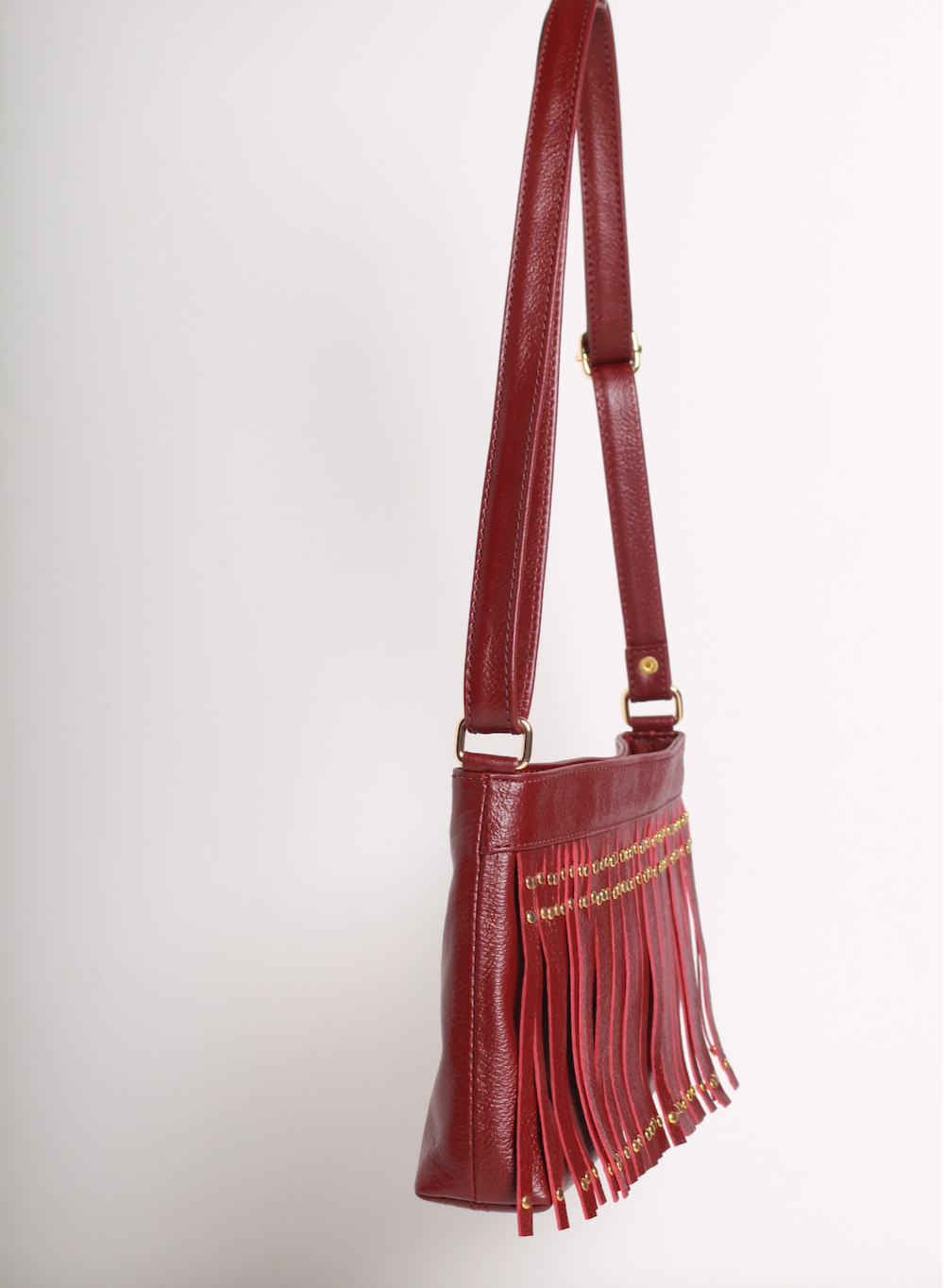 - Elaborada en cuero 100% de color vinotinto