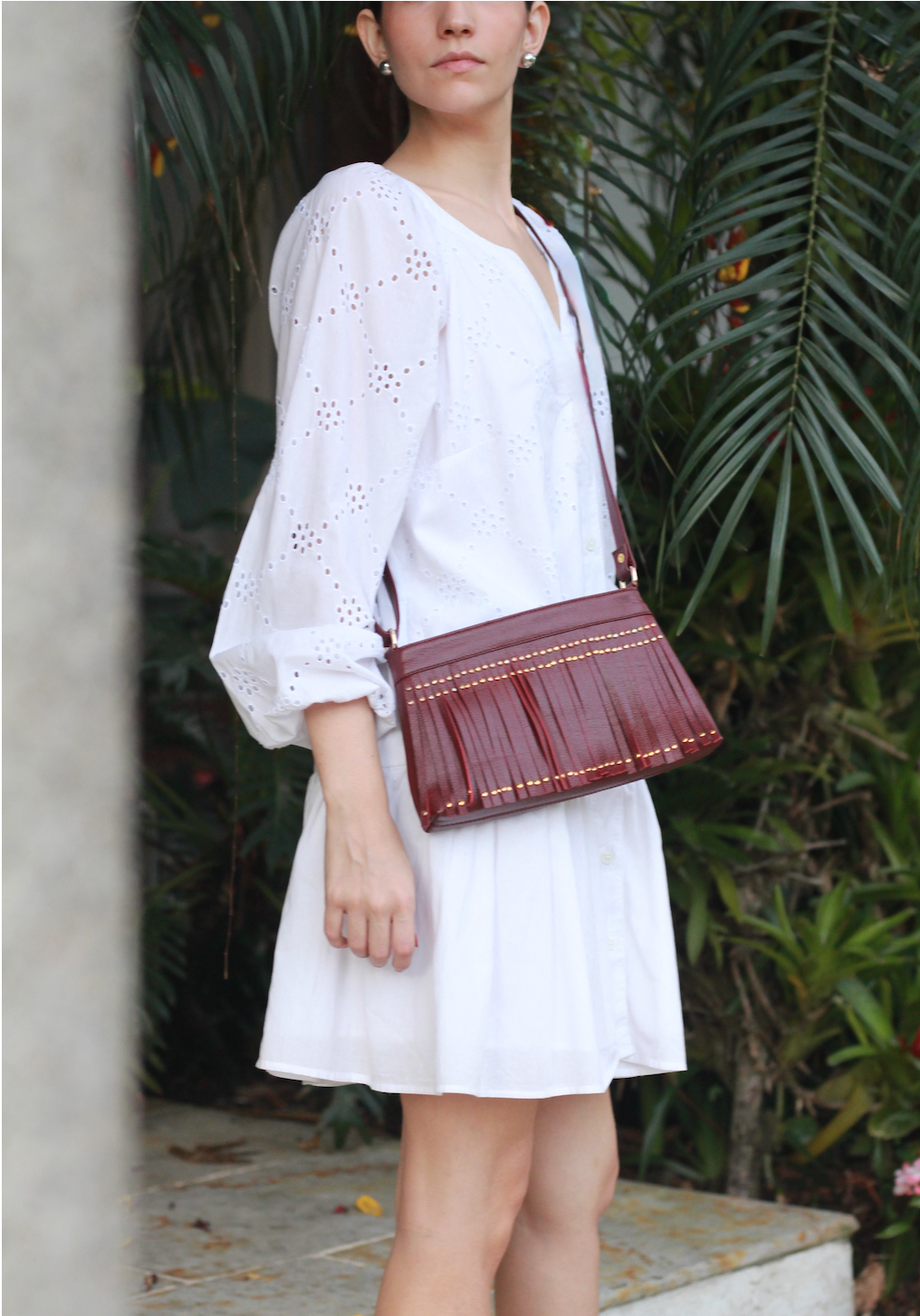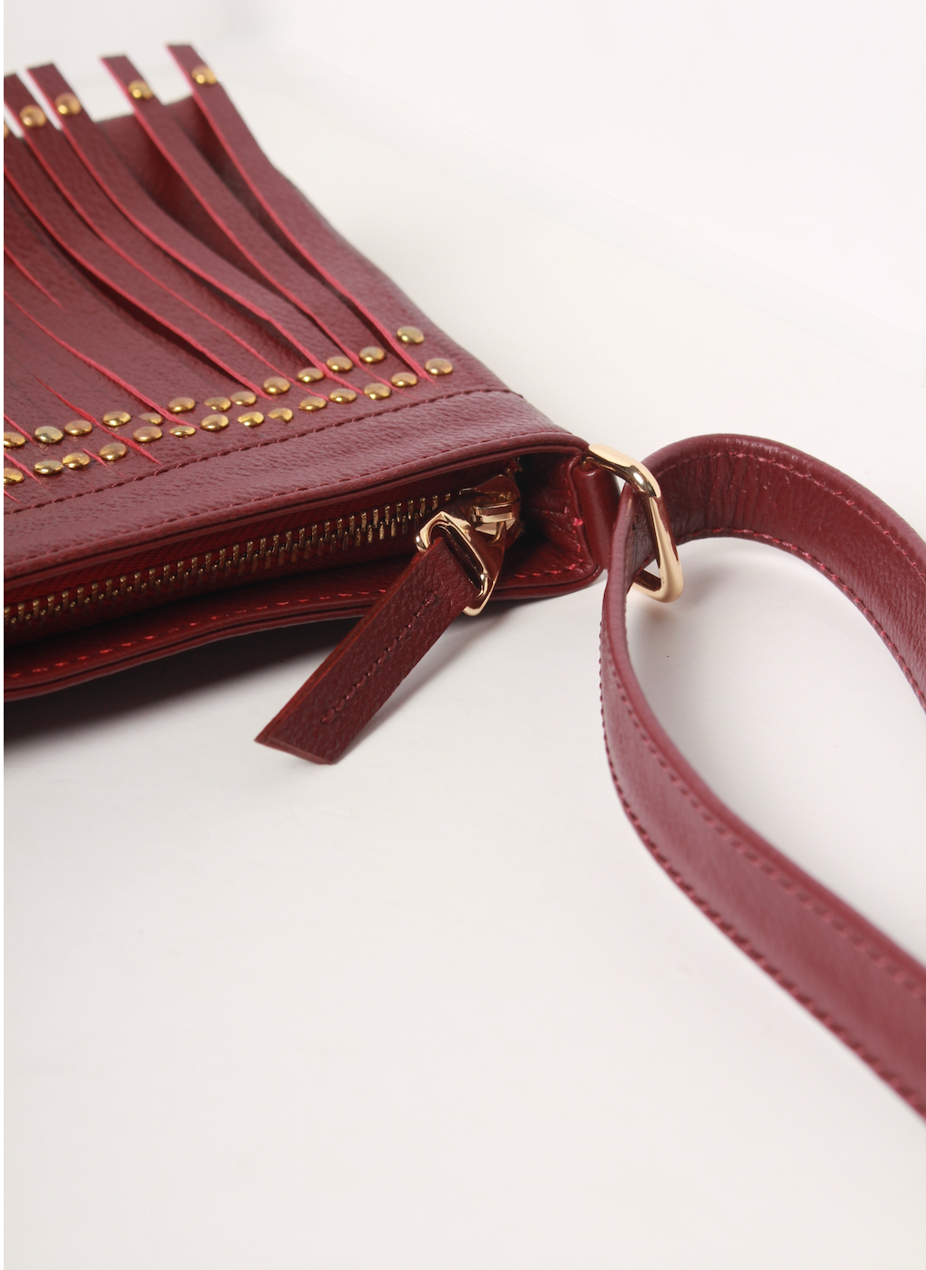 - Cierre color dorado con aplique en cuero vinotinto